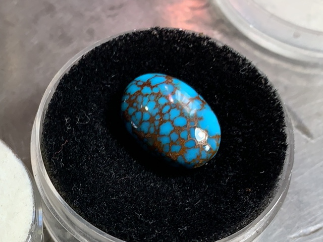 セットされているのは、濃いめのブルーに赤茶のマトリックスが映える