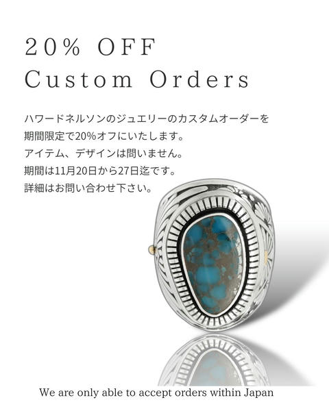 ハワードネルソンのジュエリーのカスタムオーダーをを20%オフにいたします。
