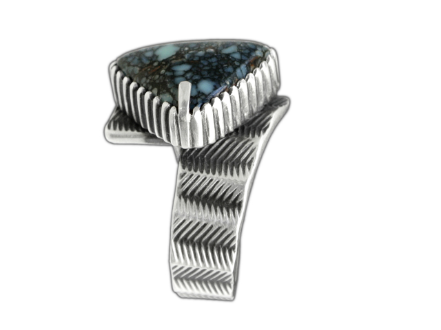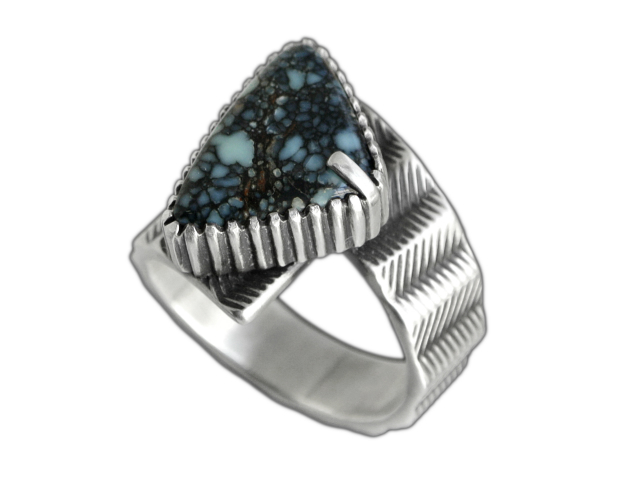 IHR018 Herringbone Stamped Ring w/ Royal Web by Ivan Howard