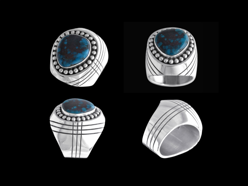 ターコイズを留めるベゼルの周囲を一周するようにドロップを配しました。