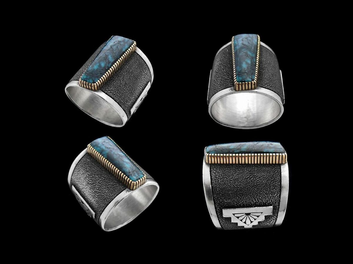 濃いブルーのターコイズと14金のコントラストが見事です。