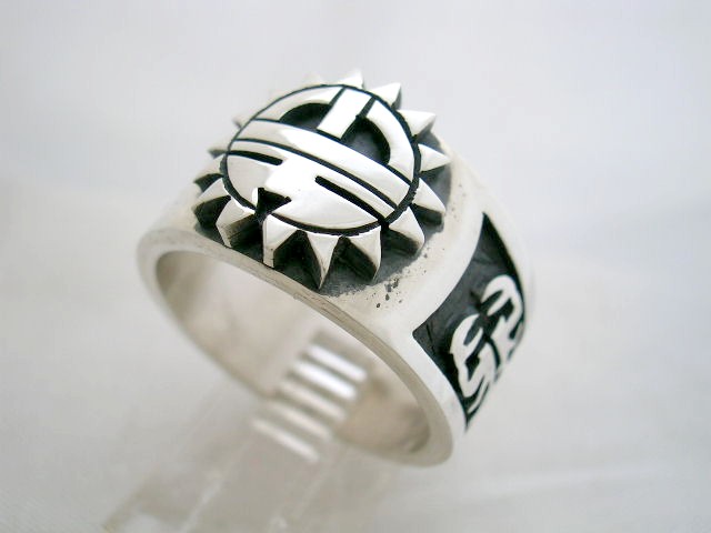本日画像のホピ族アーティストCharleston Lewis(チャールストン・ルイス)のサンフェイスリングを