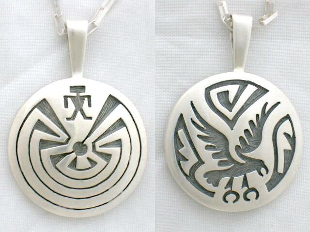 画像は本日ホームページにアップしたHopi(ホピ)族アーティストWillie Archie Talahaftewaのリバーシブルペンダントです。