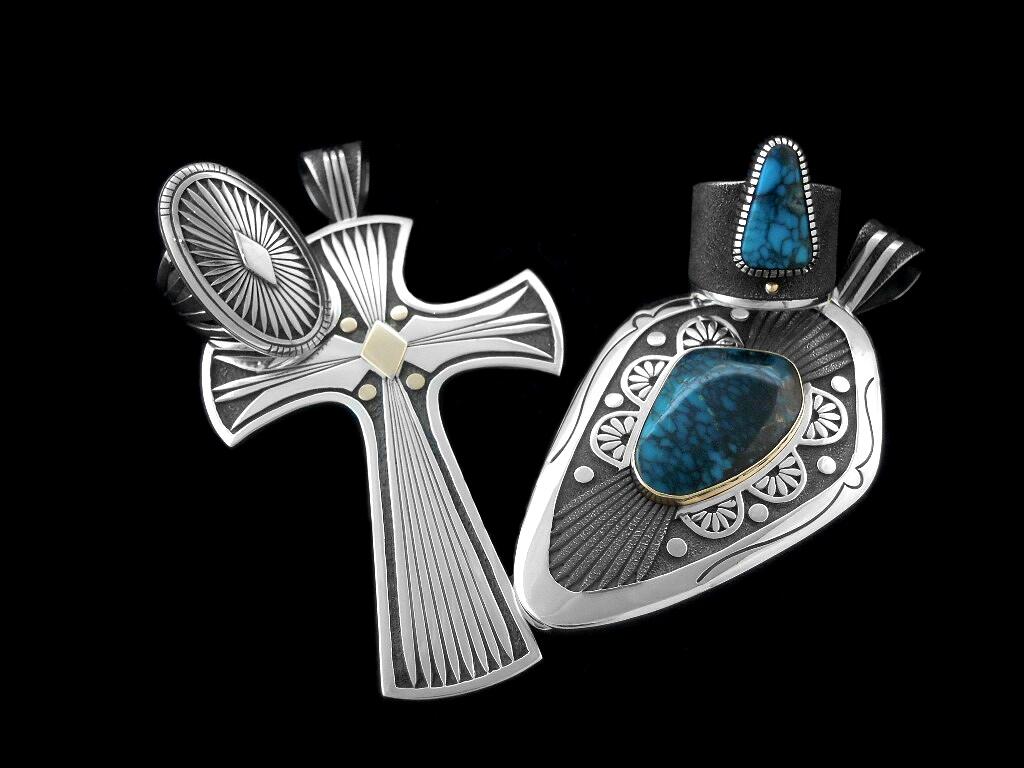 左からサンバーストリング、ニューデザインのクロスペンダント、