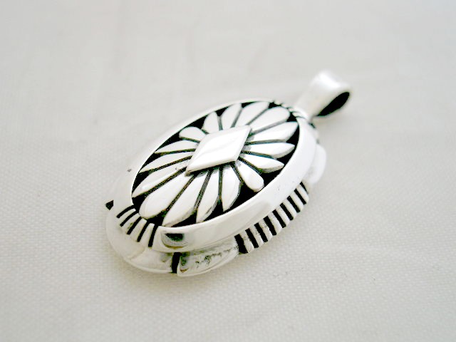 本日Navajo(ナヴァホ)族アーティストHoward Nelson(ハワード・ネルソン)のハイグレードNevada Blue(ネヴァダ・ブルー)のセットされたペンダントとサンバーストデザインの小さいペンダントをアップしました。