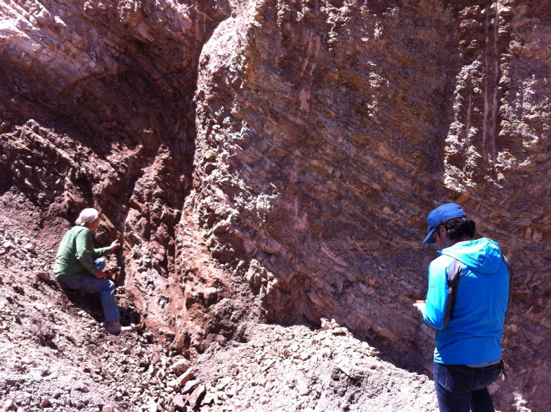バックホーを使って岩肌を大きく削った後、ターコイズを探します。