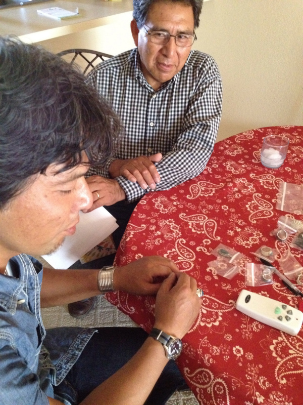 いくつかお客様からのオーダージュエリーを持ってきてくれました。