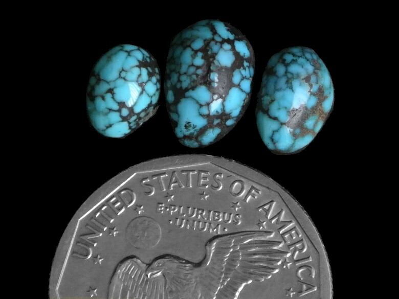 左側の石は暗いトーンのブルーに黒いマトリックスがスパイダーウェブ状にバランス良く