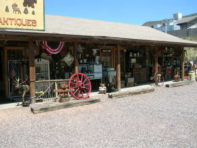 左側の写真は買い付けに行くときに必ず立ち寄るアリゾナ州のPine(パイン)という小さな町?(というにはかなり小さな規模です)にあるアンティークショップです。