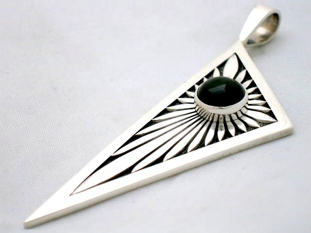 Triangle Shaped Pendant with Onyx by Howard Nelson トライアングルサンバーストペンダント