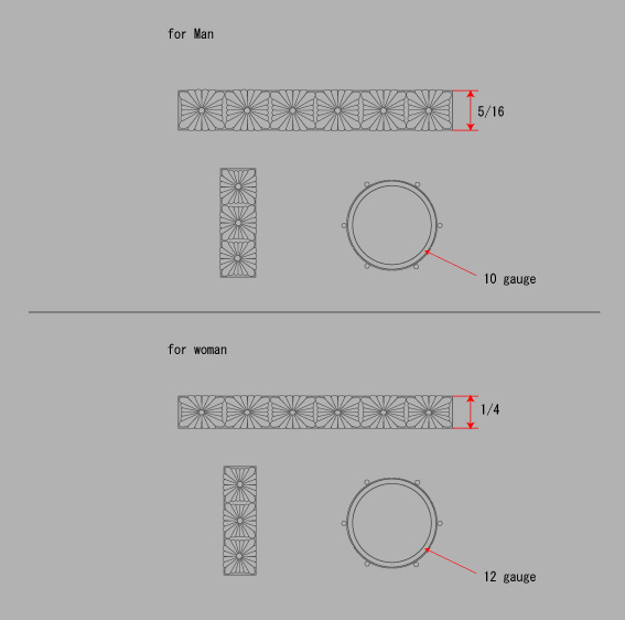 厚みを男性用10ゲージ(2.59mm)、女性用12ゲージ(2.05mm)にしました。