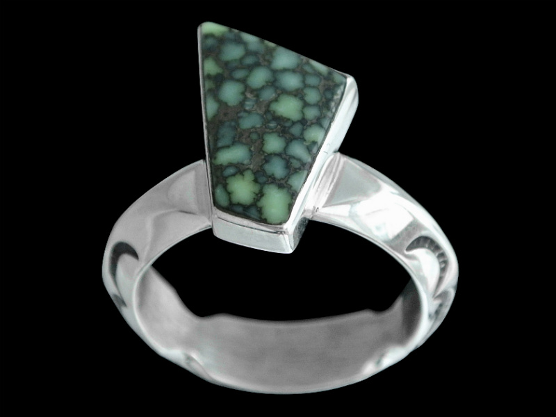 このデザインは石を際立たせたい時や、ごついデザインが苦手な 女性用のリングに最適です。 大きな石をセットしても、台座が華奢なので指が奇麗に見えます。 また、小さい石でも可愛らしく見えます。 立体感を出すためトライアングルワイヤーを使用しました。 変わった形の石も使い様ですね。