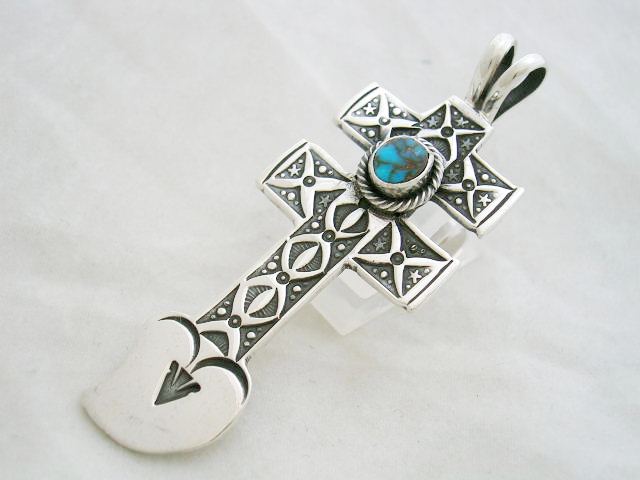 以前ブログでお知らせしておりましたNavajo(ナヴァホ)アーティストGary Reeves(ゲーリー・リーブス)のドラゴンフライクロスペンダントが入荷しました。セットされているのは美しいスパイダーウエッブが入ったキャンデラリアターコイズです。