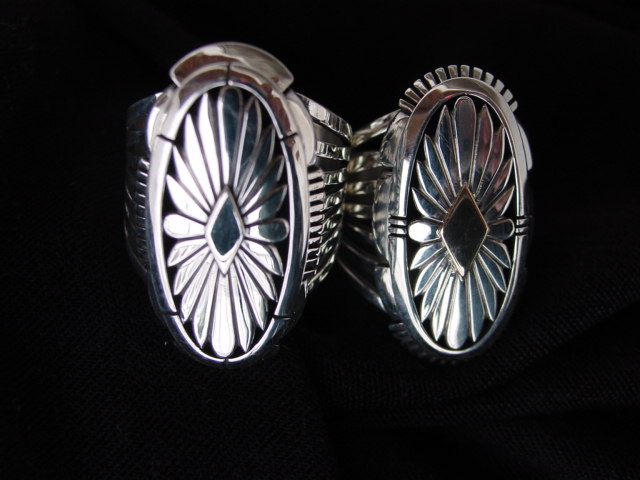 以前ブログでお知らせしておりましたNavajo(ナヴァホ)アーティストHoward Nelson(ハワード・ネルソン)のサンバーストリングが2点入荷いたしました。1点はオールシルバー、もう1点はセンターのダイア型が14金です。