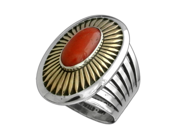 14K SUNBURST RING WITH CORAL USED