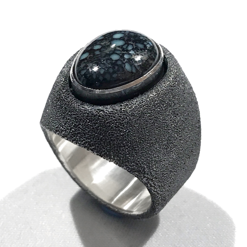 表面にテクスチャーを付け黒く燻したボックスリングにRoyal Webがセットされた