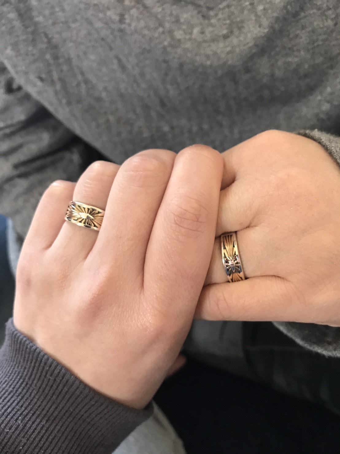 今回オーダーしたのは、女性用が幅6mm、男性用が幅8mm、サンバーストが14金です。