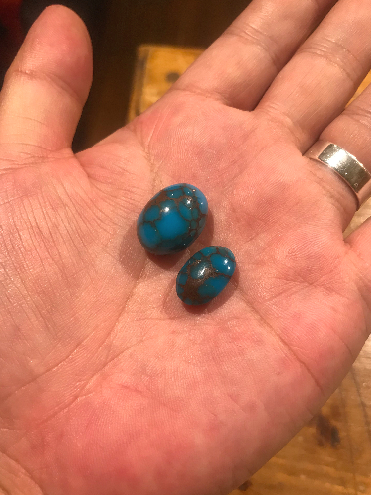 お客様から残り2点のエジプシャンターコイズを手の平にのせて