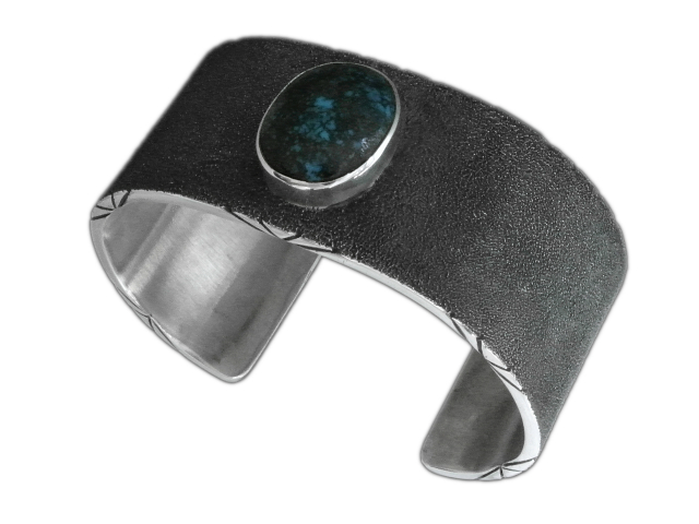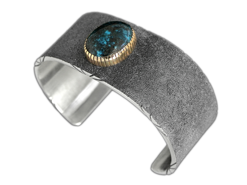 Textured Bracelet with 14K Bezel and Apache Blue by Howard Nelson