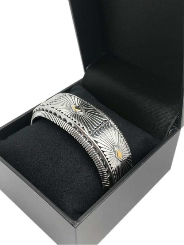 インディアンジュエリーのブレスレットは幅広のものや、厚みのあるものが多いので、