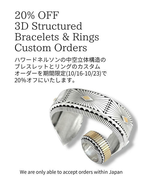 Custom orders for "3D Structured Bracelets and Rings" are going to 20% off.