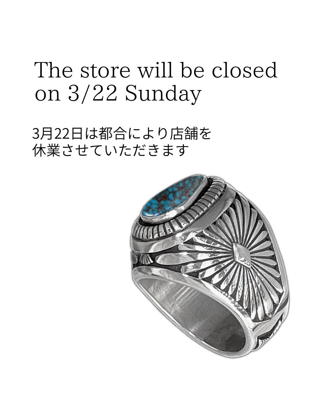 The store will be closed on 3/22 Sunday