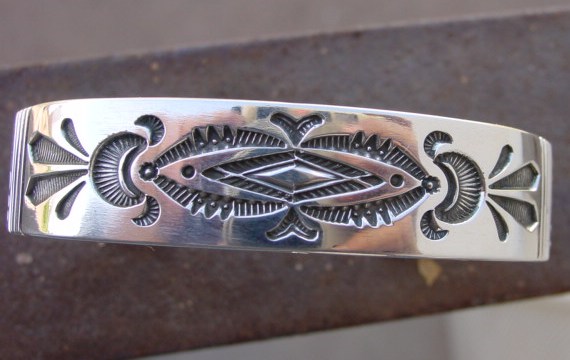 重量感のあるシルバーに美しいスタンプワークを施した逸品です。
