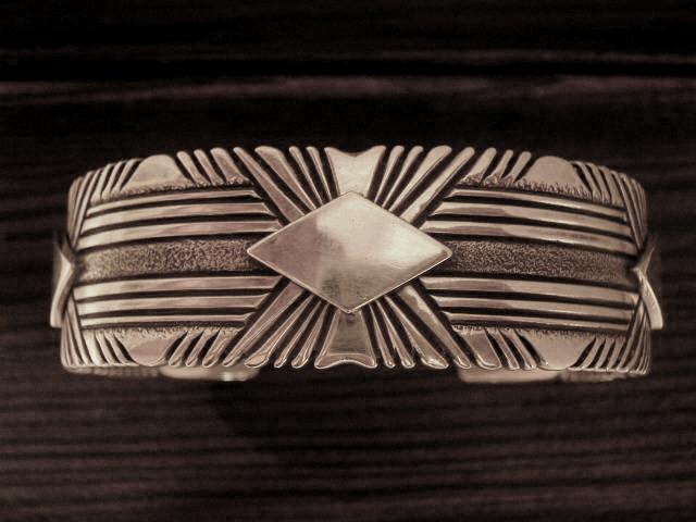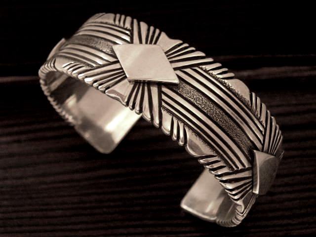 Patのブレスレットは厚さ2mmの重厚なシルバーに、美しいスタンプワークを施した逸品です。(下記画像をご参照下さい)