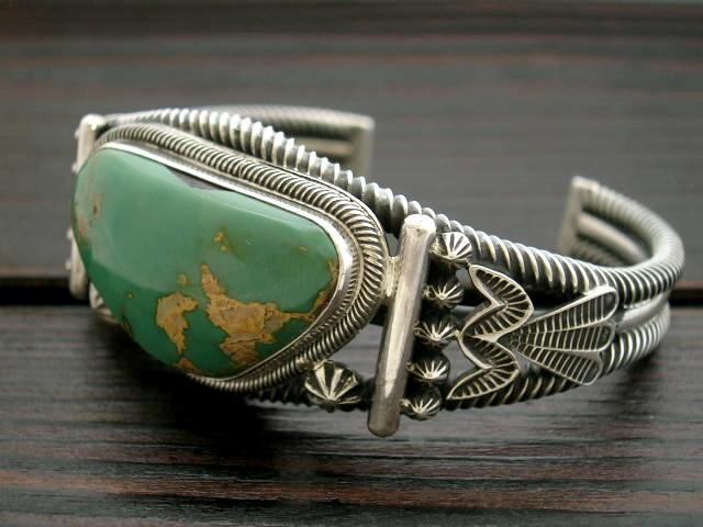 本日アップしたのはNavajo(ナヴァホ)の女性アーティストPat Bedonie(パット・ベドニー)のセンターに14金をあしらったリング3点とHoward Nelson(ハワード・ネルソン)の美しいロイストンターコイズがセットされたブレスレット1点です。