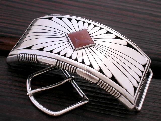 このブレスレットは当店のHoward Nelsonの作品が大好きなお客様が、Howard Nelsonのサンバーストデザインでレザーのベルト付けたいというご注文をいただきHowardにオーダーしたものです。