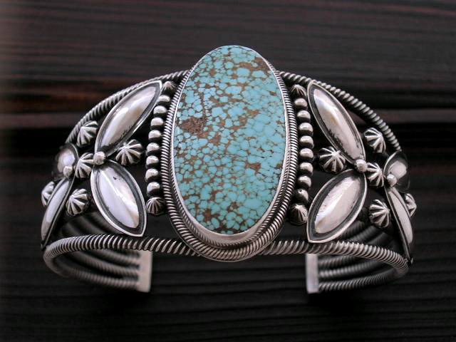 Navajo(ナヴァホ)アーティストHoward Nelson(ハワード・ネルソン)のナンバー8ターコイズがセットされたワイヤーワークのブレスレットとスタンプワークのブレスレットが入荷しました。