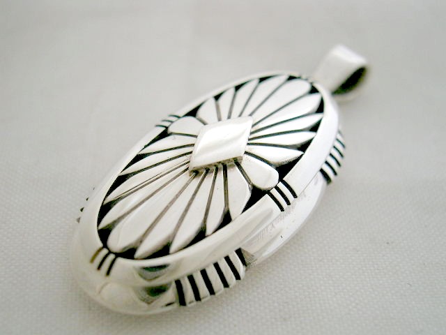 画像は本日お客様から委託していただいたナヴァホ族の著名なアーティストHoward Nelson(ハワードネルソン)のペンダントです。モチーフはサンバーストといって太陽と周りの光輪を表しています。
