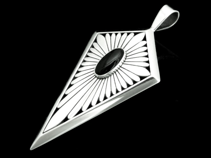 New Arrival!! Diamond Shaped Sunburst Pendant with Onyx by Howard Nelson