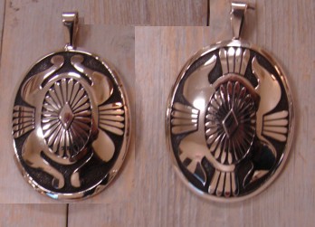 画像は近日入荷予定のHoward Nelsonのペンダントです。中心がサンバースト、周りがKethoデザインの凝った作りです。