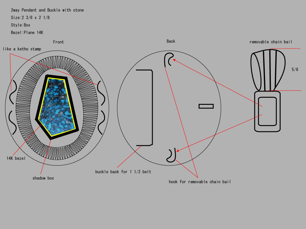 3Way Pendantのデザイン画と出来上がってきた作品です。
