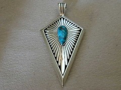 またこの他に当店でオーダーしたハイグレードイサカピークキングマンをセットしたダイア型のペンダントが入荷します。詳細はメールでお尋ね下さい。下記画像のようなペンダントです。大きさは画像のものより若干小さめです。