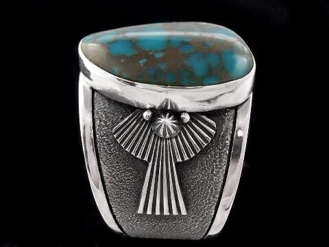 ターコイズのブルー、ベゼルのゴールドの4色のコントラストを