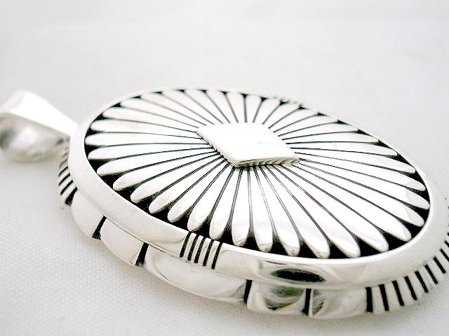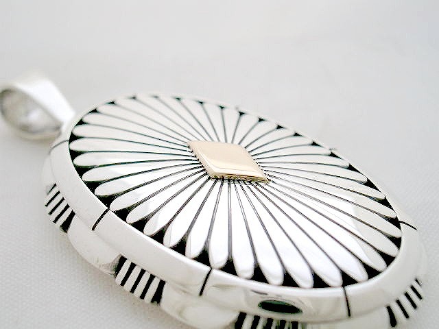下記画像はNavajo(ナヴァホ)アーティストHoward Nelson(ハワード・ネルソン)にオーダーしておりました。サンバーストデザインの3Ply(3段重ね)ペンダントです。