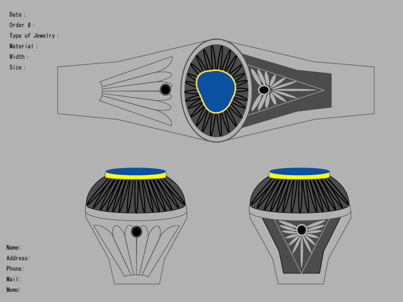 サイドのモチーフは片側はシルバーの分量を多くし、