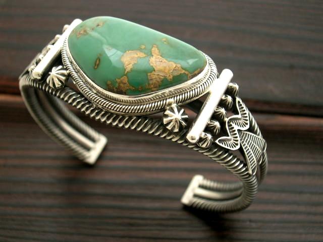 ターコイズを贅沢に3点セットしたブレスレット。