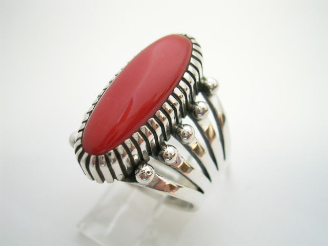美しいコーラルをセットしたシャンクリング。