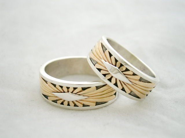 シルバーのバンドリングに14金サンバーストの